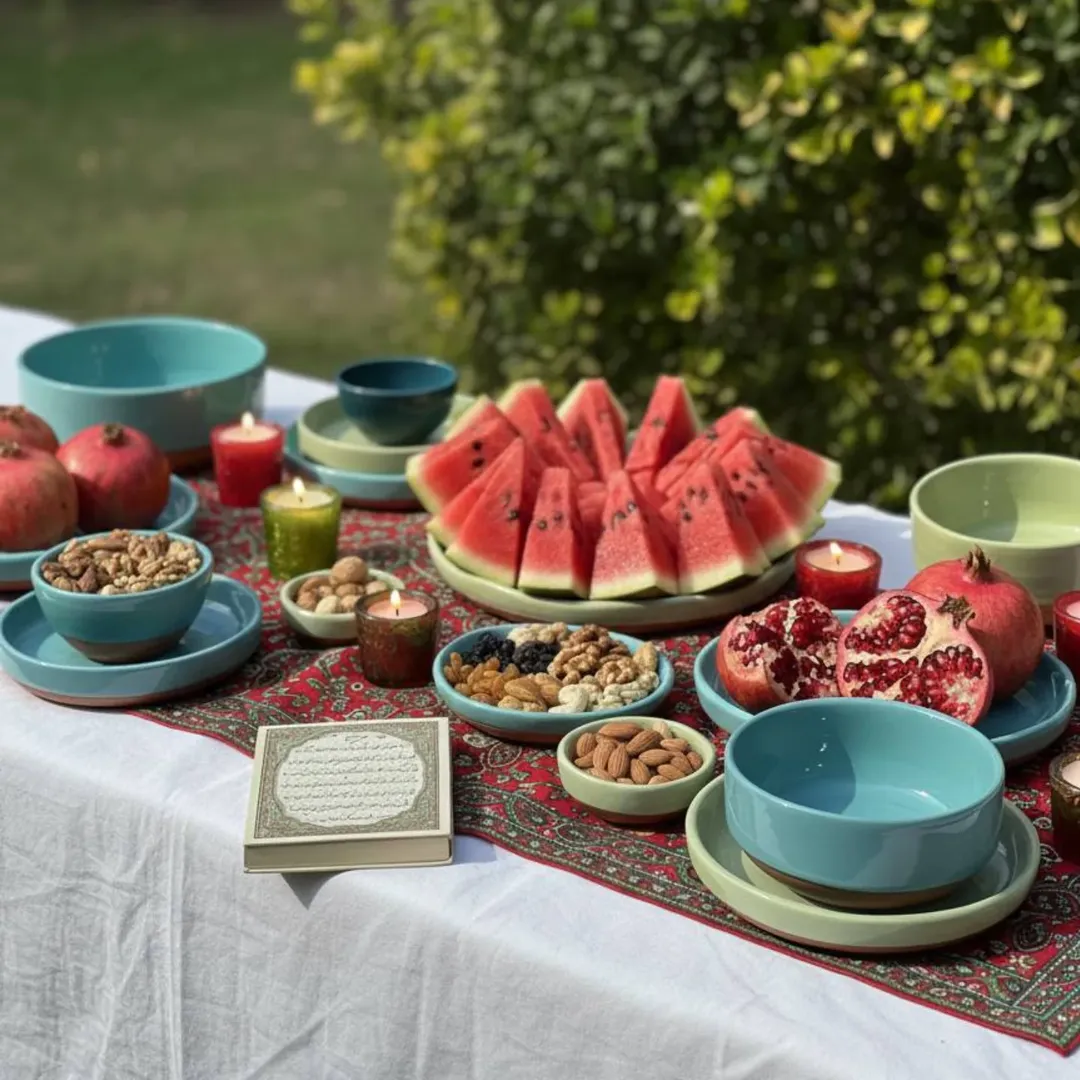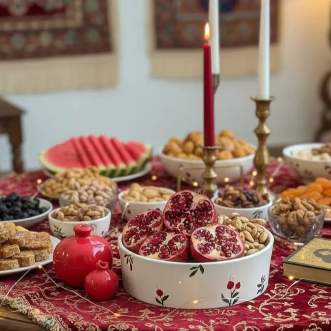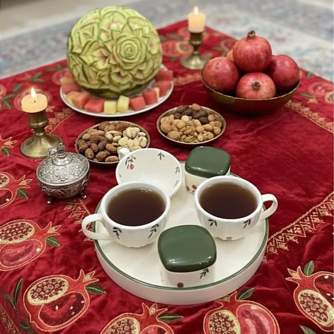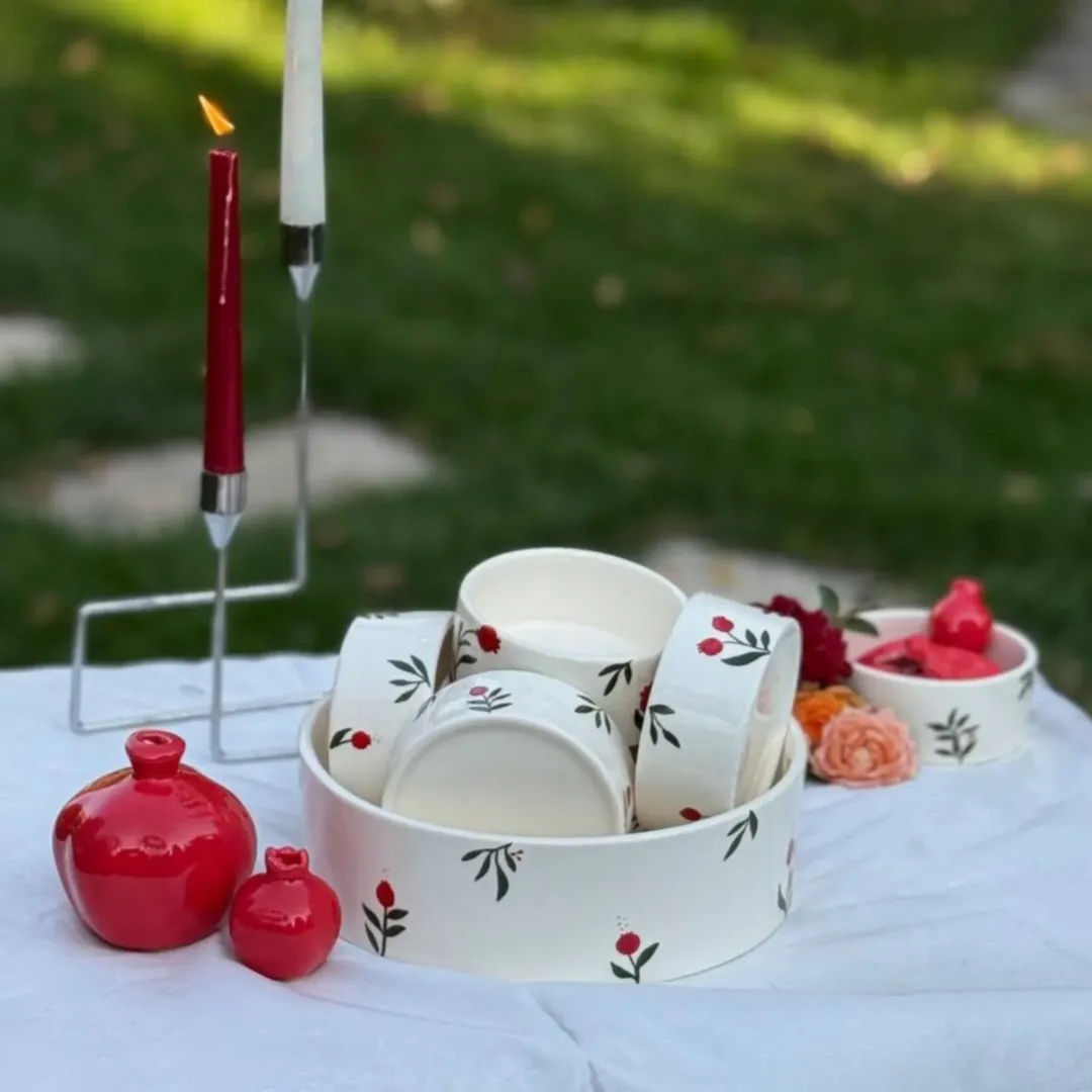 این ست شامل ۶ عدد پیاله به همراه یک عدد کاسه است مناسب اجیل خوری و انار خوری و به عنوان هفت سین هم استفاده میشود